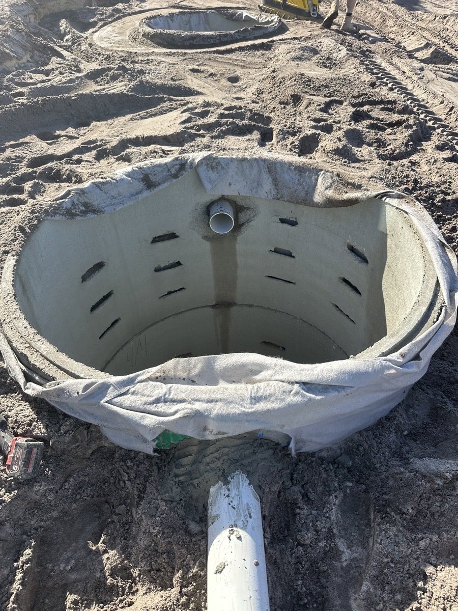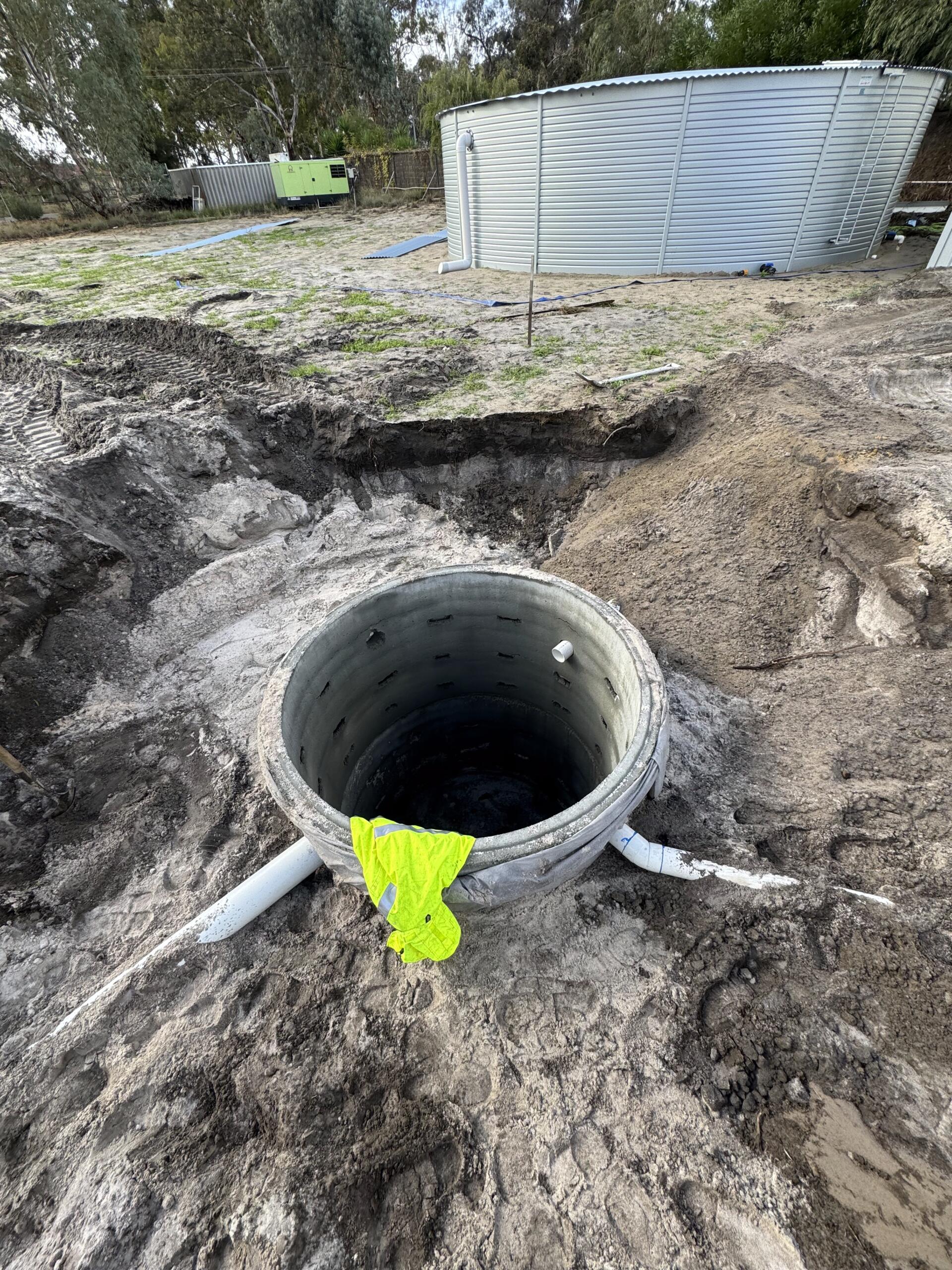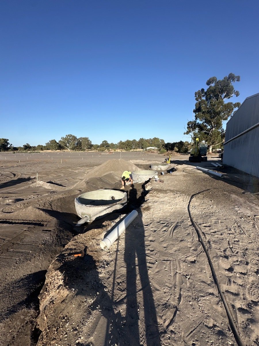 Attended site to quote commercial drainage upgrade. Supplied and installed 5 large soakwells with PVC connections, trafficable lids, bubble pit, and related works.